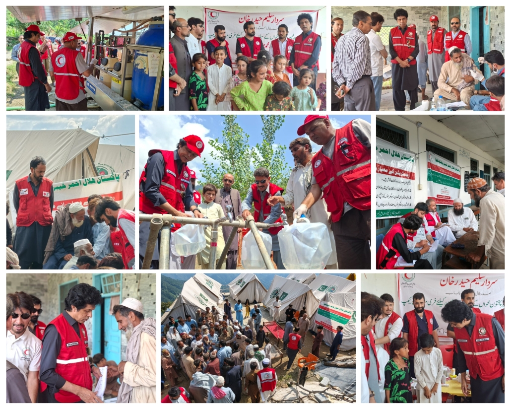 During his visit, Mr. Orakzai inspected two Mobile Health Units established by PRCS to provide free medical consultations, essential medicines, and health awareness sessions to the affected population. He also visited the Water Treatment Plant installed in Bishonri village, one of the worst-hit areas, to ensure access to safe and clean drinking water for flood-affected families.